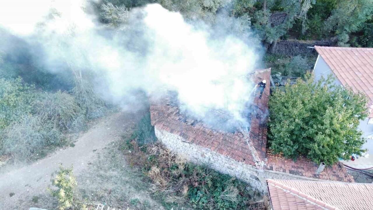 Olay, Akaca ilçesi Büyükcamili köyünde meydana geldi. Edinilen bilgiye göre, Hasan Ö.’ye ait evin tandırlık olarak kullanılan bölümünde yakılan atık malzemelerden çıkan kıvılcımlar çatıya sıçradı. Dumanları gören vatandaşlar durumu 112 Acil Çağrı Merkezine bildirdi. İhbar üzerine olay yerine sağlık ve jandarma ve Alaca Belediyesi itfaiyesi ekipleri sevk edildi.