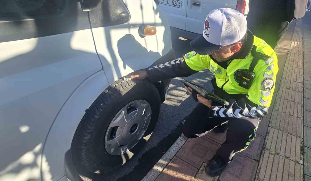 Samsun’un Bafra ilçesinde ticari araçlara yönelik yapılan kış lastiği uygulamasında, 59 servis aracı kontrol edildi.