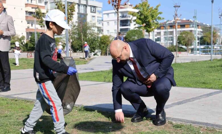 Başkan Türkel, öğrencilerle çöp topladı
