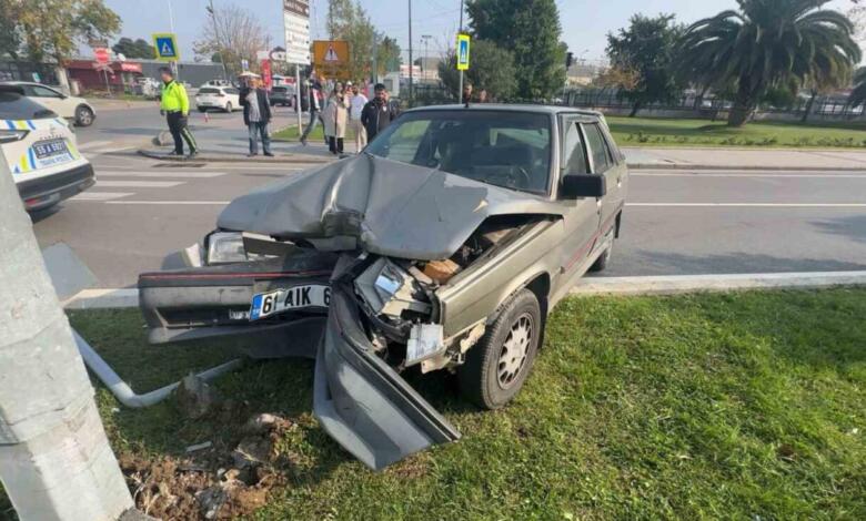 Samsun’da yayaya çarpmamak için fren yaptı, direğe çarptı: 1 yaralı