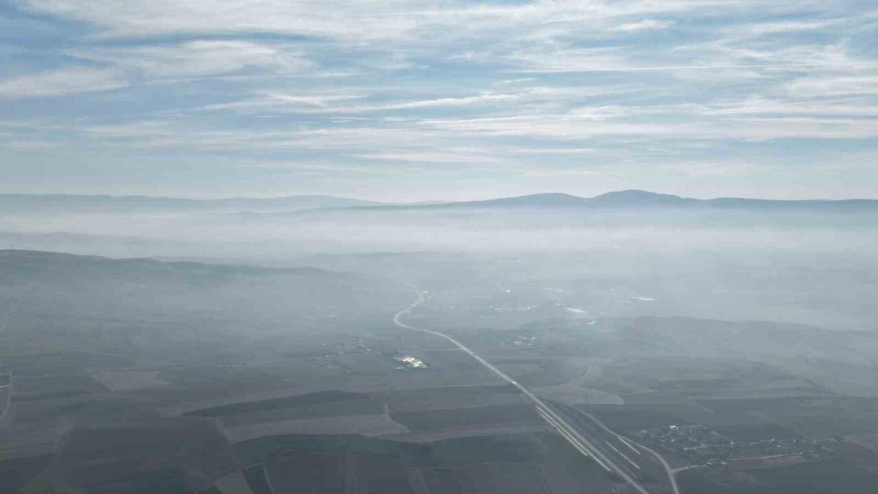 Çorum’da kent merkezini kaplayan sis havadan görüntülendi.