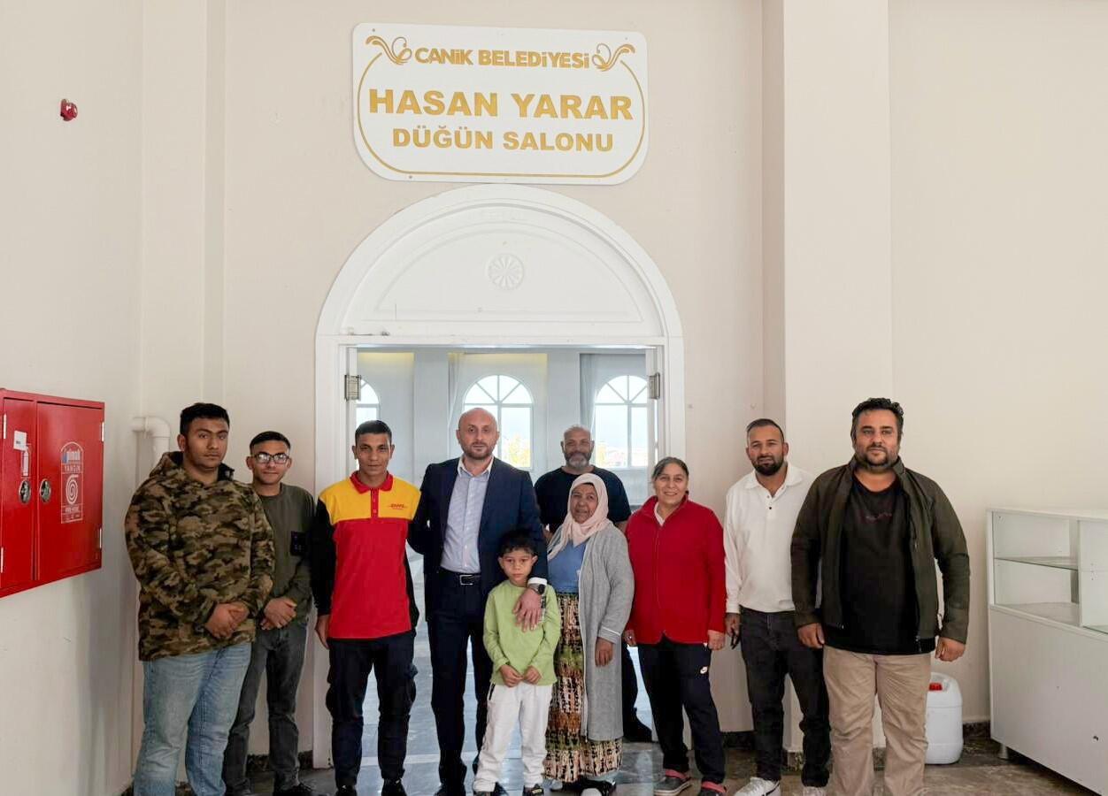 ’Canik Belediyesi Hasan Yarar Düğün Salonu’ tabelasının önünde hatıra fotoğrafı çekinen Cümbüşçü Hasan’ın ailesi, bu düşüncenin duygu ve anlam yüklü olduğunu belirterek Canik Belediye Başkanı İbrahim Sandıkçı’ya ve Canik Belediyesi Meclis Üyelerine teşekkür etti.