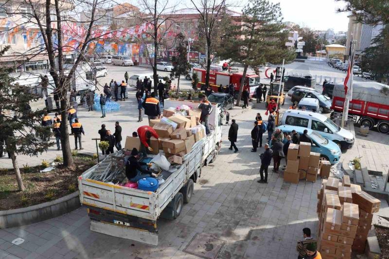 Sungurlu Belediyesi, Afşin, Elbistan, Pazarcık ve Hatay olmak üzere deprem bölgesine 5 tır yardım malzemesi, 3 arama kurtarma aracı, 2 kepçe, 1 kamyon, 10 bin kişilik aşevi ile 35 arama kurtarma personeli dualarla uğurlandı.