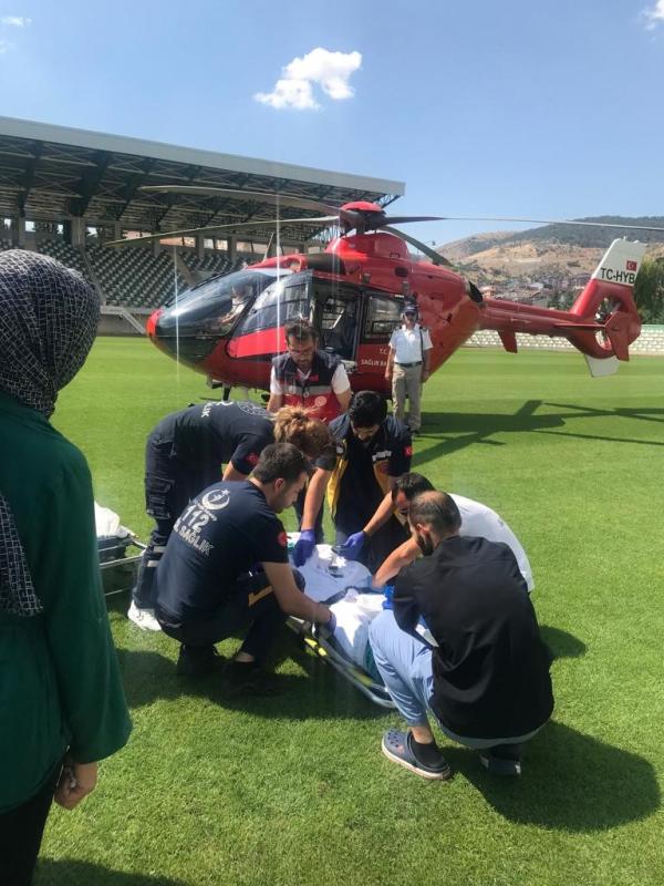 Amasya’da sezaryen doğum esnasında solunum yetmezliği çekmesine rağmen ilk çocuğunu dünyaya getirmesi sonrasında rahatsızlığı devam eden genç annenin yardımına Sağlık Bakanlığı’na ait ambulans helikopter yetişti.