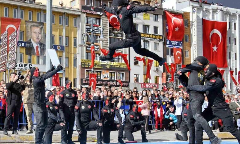 Kastamonu’da jandarma komandolar, Cumhuriyet Bayramı töreninde dövüş sanatlarındaki hünerleriyle büyük alkış topladı.