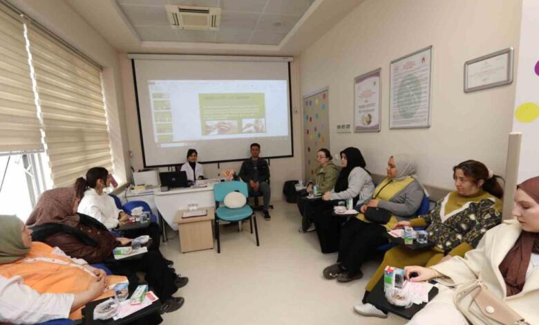 Diş Hekimi Azize Deniz Aktaş tarafından verilen eğitimde gebelik sürecinde ağız ve diş sağlığının önemi, diş eti problemlerinin anne ile bebek sağlığı üzerindeki etkileri, doğru ağız bakımı alışkanlıklarıyla tedavi yöntemleri hakkında kapsamlı bilgiler paylaşıldı.