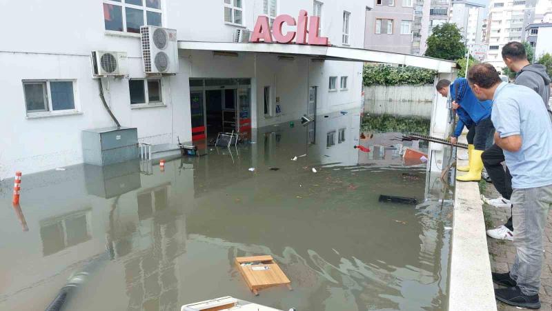 Samsun’da özel bir hastanenin acil servisini sel suyu basıp doldururken, mahsur kalan temizlik görevlisi kurtarıldı.