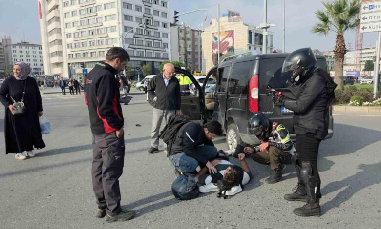 Çarpmanın şiddetiyle motosiklet sürücüsü yola savrularak yaralandı. Olay yerine sevk edilen polis ekipleri çevrede güvenlik önlemi aldı. Yaralı motosiklet sürücüsü, sağlık ekiplerince ambulansla hastaneye kaldırıldı. Yüzünde cam kırığı yaraları bulunan araç sürücüsü Y.Y. ise tedaviyi kabul etmedi.