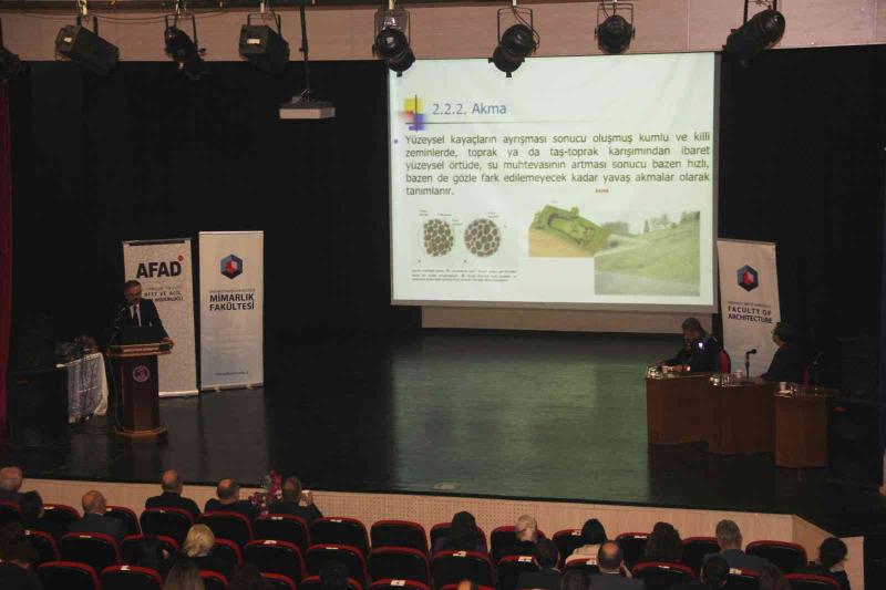 Heyelanın jeolojik, morfolojik, fiziksel ve insan nedenleri olarak 4 gruba ayrıldığını belirten Doç. Dr. Gökhan Demir, “Heyelan tehlikesi bölgesinde yapacak olduğunuz müdahalenin neye sebebiyet verebileceğini bilmeniz gerekmektedir. Kayma direncini azaltan etkenler arasında da malzemenin asal karakteristik ya da eğik durumunun ileri gelen etkenlerini ihata etmekte. İkinci bir grupta malzemenin kesme kuvvetini azaltıcı yönde etki yapan değişen ya da zamanla değişme kaydeden etkenleri içine almaktadır. Jeolojik nedenler, morfolojik nedenler, fiziksel nedenler ve insan nedenleri olarak 4 ana grup altında toplayabiliriz. Heyelan duyarlılık analizi alansal bazda heyelanların tespiti ve heyelan oluşabilme ihtimalinin oradaki varlığı dikkate alınmalıdır. Heyelanlı alanların incelenmesi durumu söz konusudur. Bu alanı kullanacaksanız, alandaki heyelanın önlenmesi, sonrasında da mühendis çalışması yaparak nasıl önleyeceğiniz durumu etkeni oldukça önemlidir. Doğru tespit yapmak durumundasınız ve öncelikle arazi çalışmaları sonrasında da araziden laboratuvara getirdiğiniz örneklerin size verecek olduğu bir takım veriler vardır. Bu verileri kullanmak suretiyle modellemeler yapıyoruz ve bu modellemeler sonrasında da stabilite analizlerini ortaya koymuş oluyoruz. Heyelan olayının meydana geldiği yerin yüzey şekilleri iklim, bitki örtüsü, iç özellikleri teknolojisi, jeolojik yapısı ve yer altı suyu durumunu incelemek durumundayız. Buradan aldığımız örneklerle de laboratuvarda deneyler yapmaktayız” şeklinde konuştu.