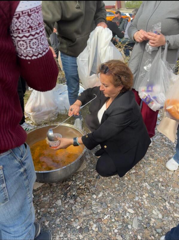 Sabahın erken saatlerinde hazırlanan sıcak çorbalar, Doğan’ın öncülüğünde işçilere ikram edildi.