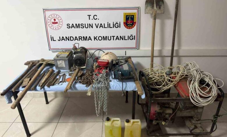 Edinilen bilgiye göre, Samsun İl Jandarma Komutanlığı ekipleri, Alaçam ilçesinde 4 şahsın define aramak için kaçak kazı yaptığı bilgisine ulaştı. Bölgeye yapılan operasyonda, şahıslar kazı yaptıkları esnada kullandıkları malzemelerle birlikte yakalandı. Yakalanan 4 kişi hakkında soruşturma başlatıldı.