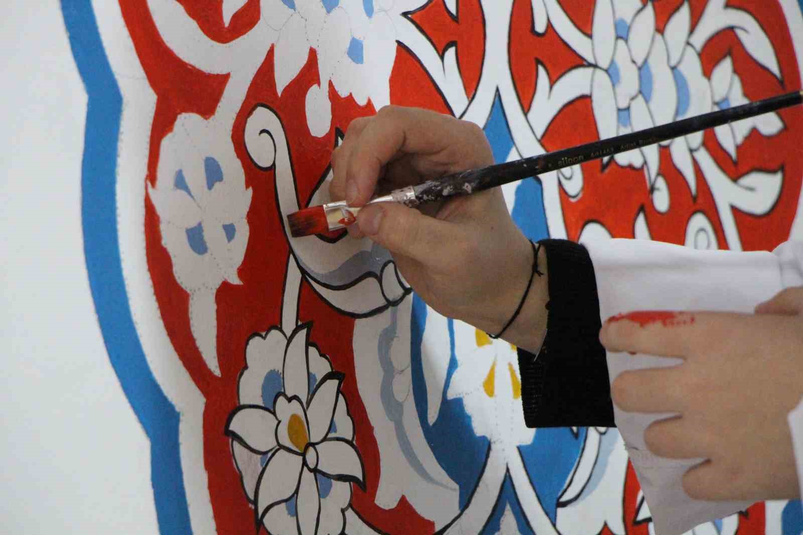 Tarihi motiflerin titiz bir şekilde duvara işlediklerini anlatan öğrencilerden Ayşe Selin İnan, “Bu sanatın inceliklerini öğrenirken bir yandan da keyif alıyoruz” dedi.