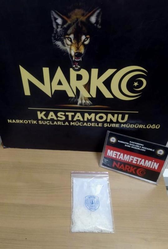 Edinilen bilgiye göre, Kastamonu İl Emniyet Müdürlüğü Narkotik Suçlarla Mücadele Şube Müdürlüğü ve İstihbarat Şube Müdürlüğü ekipleri tarafından, şüphe üzerine F.K. isimli şahsın üzerinde ve eşyalarında yapılan aramada 8,6 gram metamfetamin ele geçirildi. Olayla ilgili F.K. gözaltına alındı.