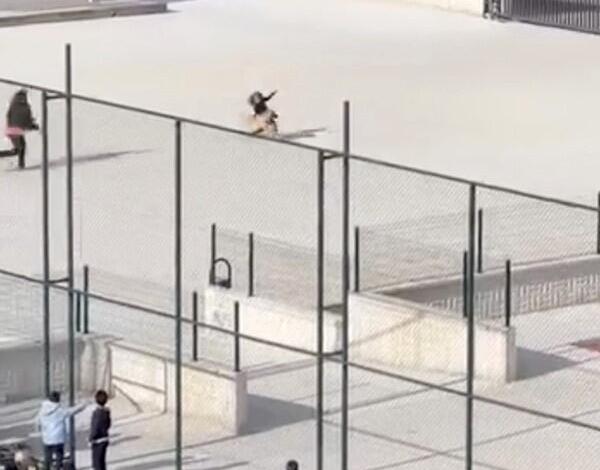 Okul bahçesine giren köpek çocuklara büyük panik yaşattı: O anlar kameraya yansıdı