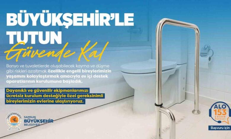 Özel bireylerin yaşamını kolaylaştıran ve her alanda onların yanında olan Samsun Büyükşehir Belediyesi “Büyükşehir ile Tutun, Güvende Kal” mottosu ile özel bireyler için ev içi tutunma aparatlarının kurulumuna başlıyor. Özel bireylerin kendi yaşam alanlarında daha konforlu, güvenli ve bağımsız bir şekilde hareket edebilmeleri hedefiyle yürütülen proje kapsamında tuvalet ve banyolara dayanıklı ve güvenli tutunma aparatları, duvar kolları ve çeşitli yardımcı ekipmanlar monte ediliyor. Söz konusu aparatların kurulumu, Belediye ekipleri tarafından tamamen ücretsiz olarak gerçekleştiriliyor.