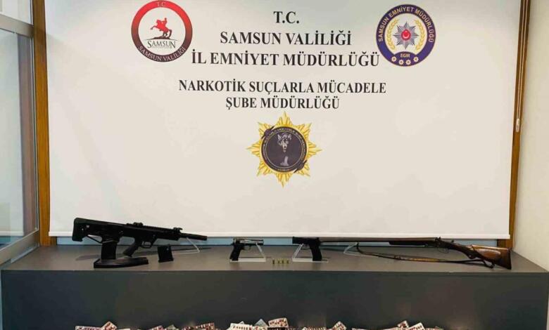 Edinilen bilgiye göre, Samsun İl Emniyet Müdürlüğü Narkotik Suçlarla Mücadele Şube Müdürlüğü ekiplerince uyuşturucu madde ticareti yaptığı değerlendirilen şahıslara yönelik Atakum ilçesinde eş zamanlı operasyon düzenlendi. G.K. (21), E.C. (21), M.Ö. (19) ve K.A. (18) isimli kişilerin ikametlerinde, motosikletlerinde ve kullandıkları kulübede yapılan aramalarda 10 bin 192 adet sentetik ecza, 2 ruhsatsız tabanca ve 2 ruhsatsız tüfek ele geçirildi. Şüpheliler hakkında ’uyuşturucu madde ticareti’ ve ’6136 sayılı Kanun’a muhalefet’ suçlarından adli işlem başlatıldı.