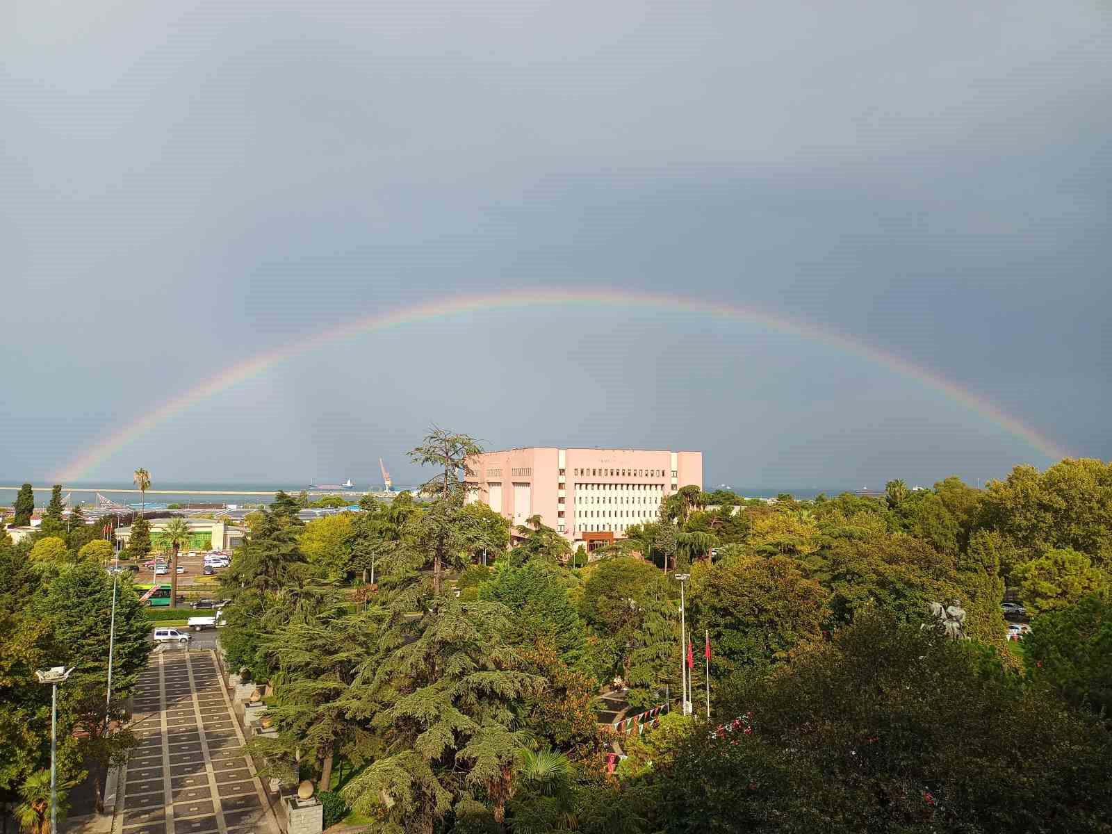 Samsun’da yağmurun ardından ortaya çıkan gökkuşağı, görenleri hayran bıraktı.