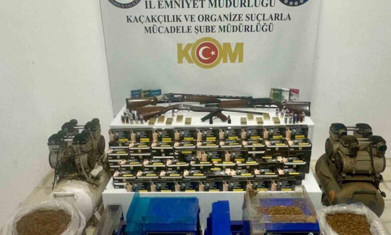 Samsun İl Emniyet Müdürlüğü Kaçakçılık ve Organize Suçlarla Mücadele Şube Müdürlüğü ile Vezirköprü İlçe Emniyet Müdürlüğü ekiplerince kaçak tütün ve silah ticaretinin önlenmesine yönelik ortak operasyon gerçekleştirildi. Vezirköprü ilçesinde yapılan aramalarda 37 bin adet makaron sigara, 3 bin adet boş makaron, 75 kilogram kaçak tütün, 2 adet elektrikli sigara sarma makinesi, 2 adet kompresör, 1 adet ruhsatsız tabanca, 3 adet tüfek, 2 adet şarjör, 527 adet tabanca fişeği ve 110 adet kartuş ele geçirildi. Operasyonda 1 şüpheli gözaltına alındı. Şüpheli hakkında “Kaçakçılıkla Mücadele Kanunu’na muhalefet” ve “ruhsatsız silah bulundurmak” suçlarından adli işlem başlatıldı.