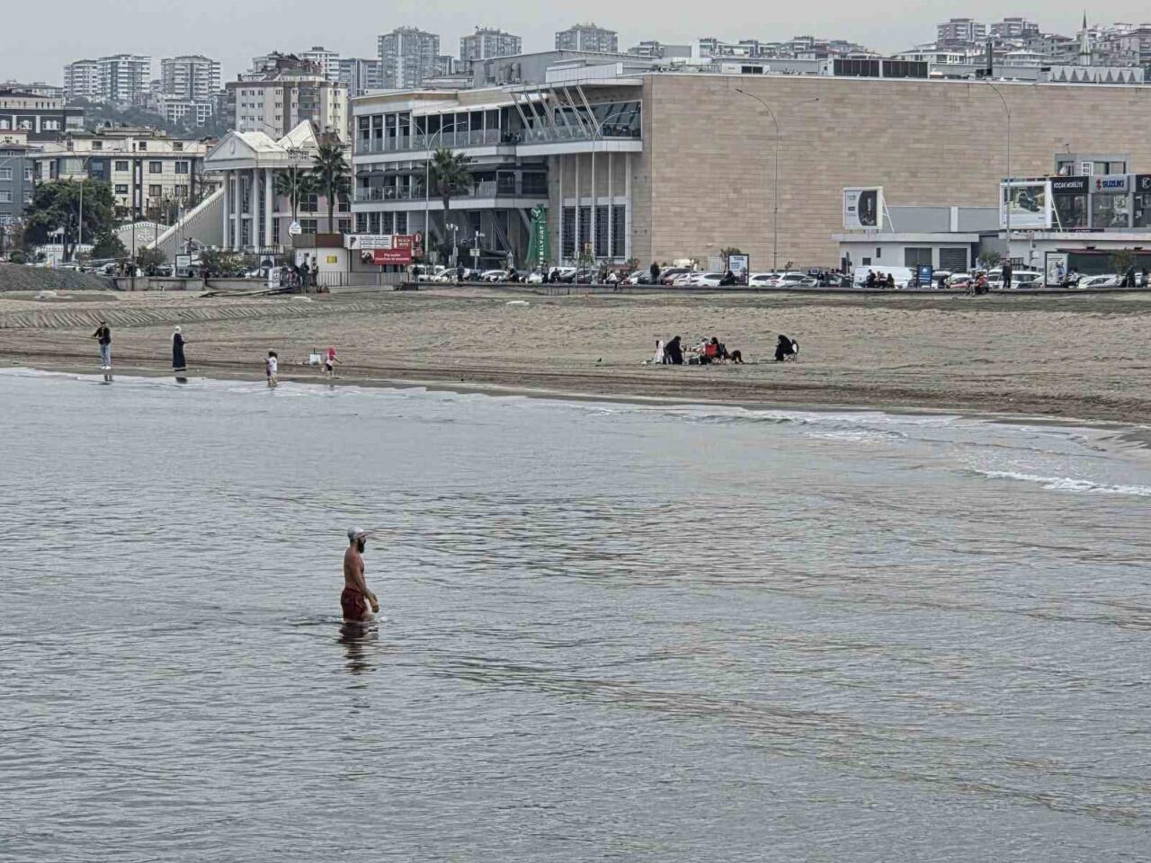 Kentte hava sıcaklıklarının mevsim normallerinin altına düşmesine rağmen gündüz 17, deniz suyu sıcaklığının ise 19 derece ölçüldüğü Atakum sahilinde bazı vatandaşlar denize girmeyi tercih etti. Sahilden denize açılan 4 kişi dakikalarca yüzerek suyun keyfini çıkardı. Serin suda kulaç atan vatandaşlar, çevredekilerin dikkatini çekerken o anlar cep telefonuyla kayıt altına alındı. Farklı noktalarda denize giren kişiler, bir süre yüzdükten sonra sahile geri döndü.