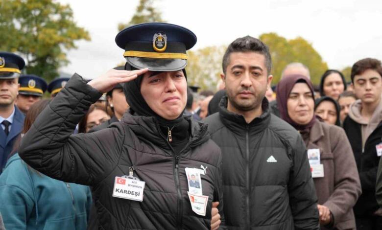 Gürcistan’da askeri uçağın düşmesi sonucu şehit olan Astsubay Üstçavuş Emre Altıok’un cenazesinde, polis olan kız kardeşinin ağabeyinin şapkasını takarak selam durup tabutunu okşadığı anlar yürekleri dağladı.