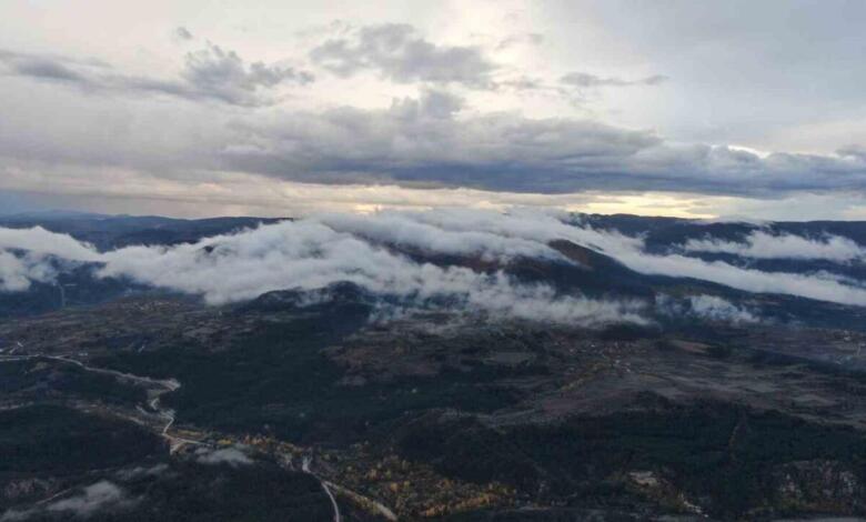Kastamonu yaylalarında sis ve sonbaharın renklerine bürünen ormanların buluşması ortaya kartpostallık görüntüler çıkardı.