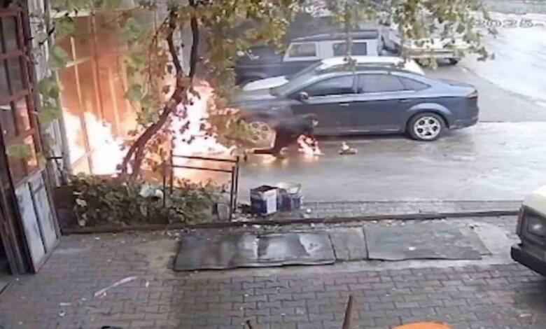 Ekiplerin incelemeleri sürerken, yangın anı saniye saniye güvenlik kamerasına yansıdı. Görüntülerde, iş yerinin içinden bir anda alevler yükselmeye başladığı ve bu sırada içeride bulunan iki kişinin koşarak dışarı çıktığı görülüyor. Son anda dışarı çıkabilen S.S. ve Onur G., koşarak kıyafetlerini ve ellerini saran alevleri söndürmeye çalışıyor.