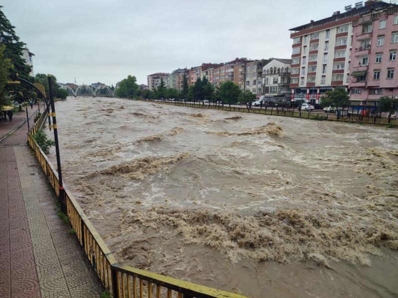 Şehir merkezinde taşmasına ramak kalan Terme Çayı, görenleri tedirgin ediyor.