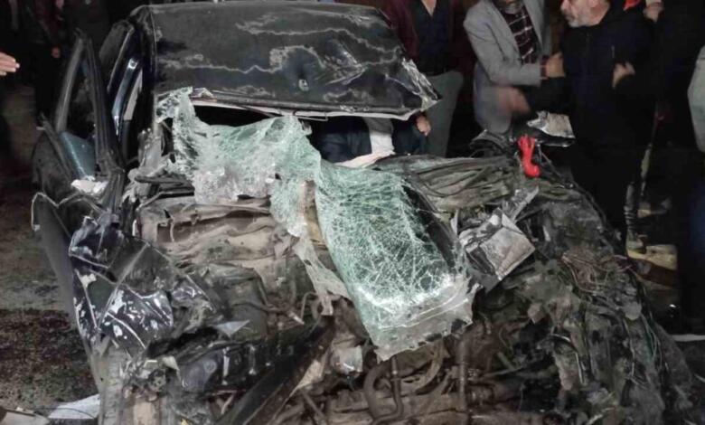 Tır dorsesine çarpan otomobil hurda yığınına döndü, sıkışan sürücü güçlükle kurtarıldı