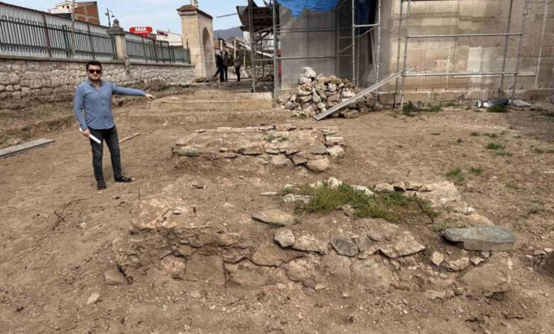 Tokat’ta 540 yıllık Gülbahar Hatun Camii restorasyon çalışmaları sırasında, eski fotoğraflarda da görülen tarihi mezar kalıntılarına rastlandı.