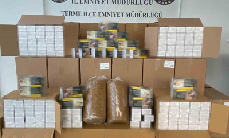 Terme ilçesinde A.U. (50)’ye ait iş yeri ve depoda yapılan eş zamanlı aramalarda 447 bin 600 adet boş makaron, 23 bin 800 adet doldurulmuş makaron ve 13 kilogram kaçak tütün ele geçirildi. Şüpheli hakkında Kaçakçılıkla Mücadele Kanunu’na muhalefet suçundan adli işlem başlatıldı.