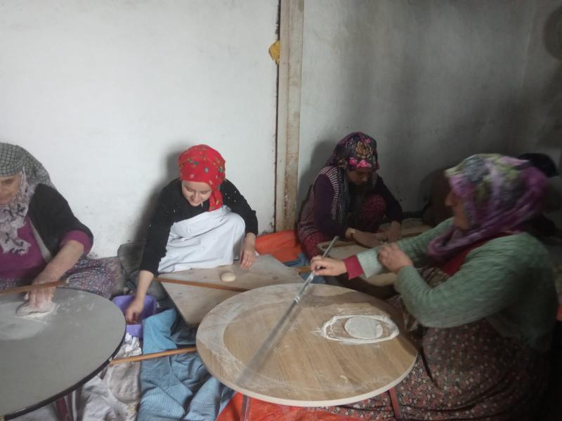 Fırında imece usulü yufka açan Artova’lı kadınlar, üniversite öğrencilerinin yardımsever davranışlarından dolayı çok memnun kaldıklarını ifade etti.