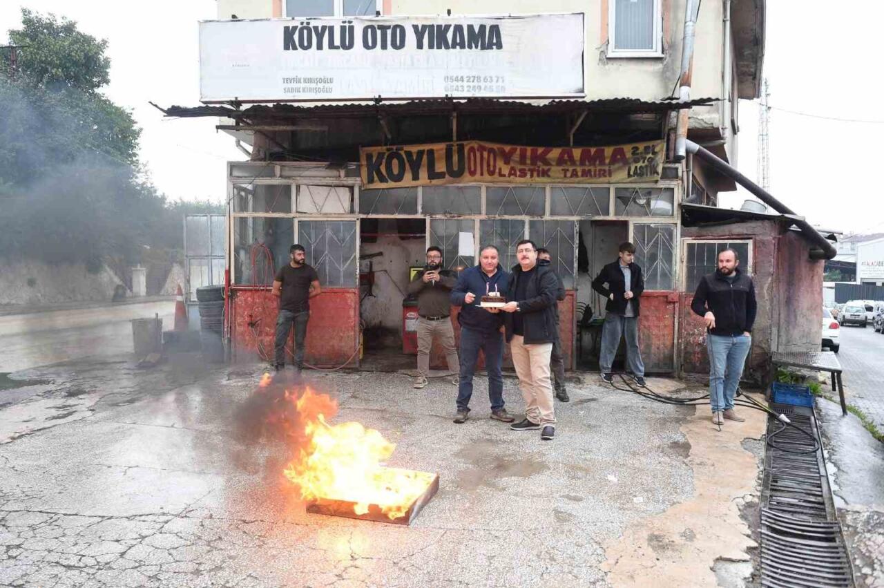 Kastamonu’da sanayi sitesi esnafı, İtfaiyecilik Haftası sebebiyle yangın ihbarında bulunarak gelen ekipleri, pastayla karşıladı.