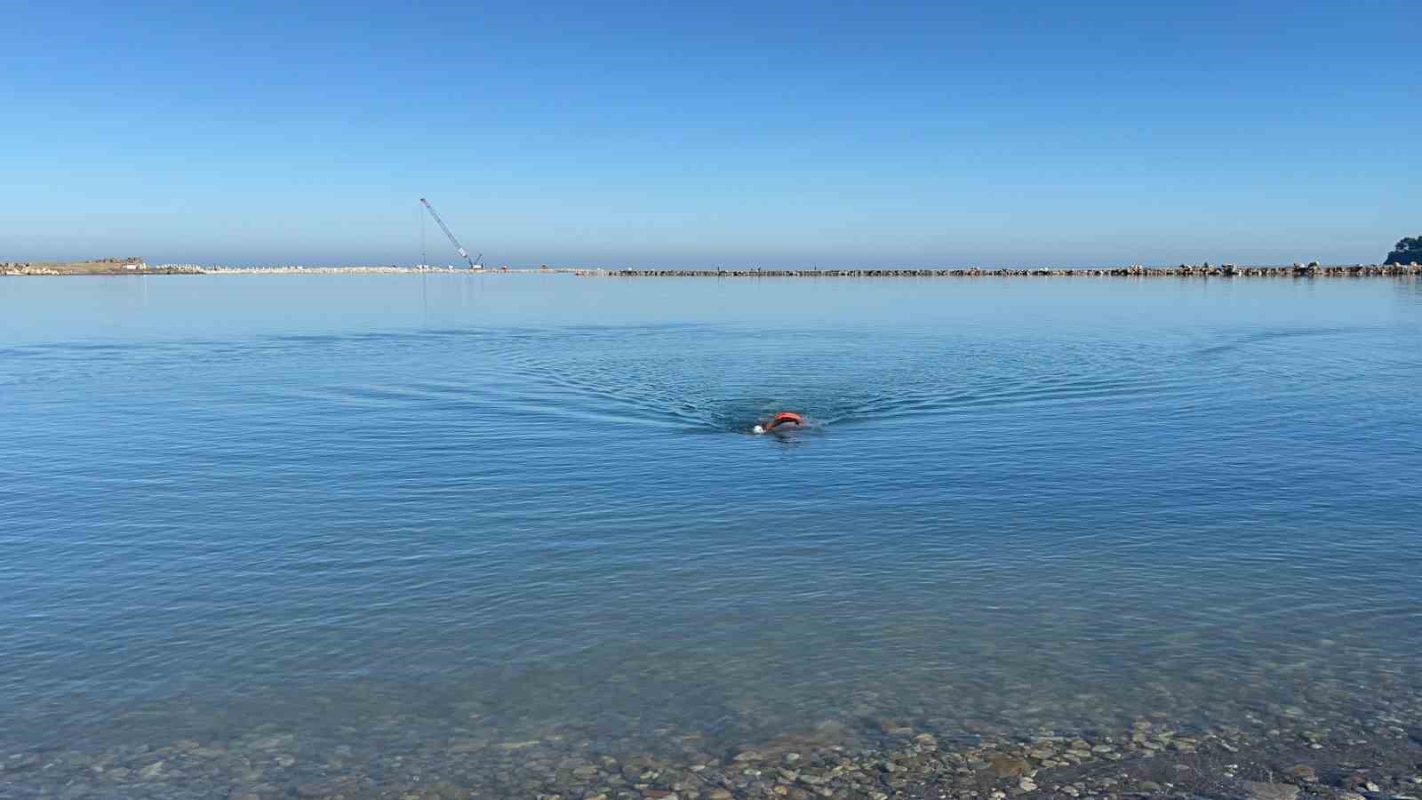 Kastamonu’da Saim Güler adlı vatandaş, 2025 yılının ilk gününü soğuk havada denize girerek karşıladı.